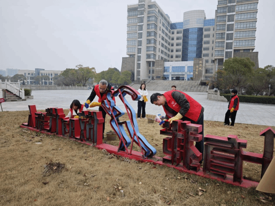 活动中,大家沿着瑶湾景观“金线”先后来到景区渠首、水文化广场周边、水工巧门及黄河路、井冈路等主干道,对“我爱你 中国”“奋斗有我 做时代新人”“校徽校训”“十六字治水思路”等景观小品和瑶湾指示牌进行清理。大家手持抹布、水桶等清洁工具,分工协作,热情高涨,干劲十足,不放过任何卫生死角,逐一清洁灰尘、水渍等,进一步美化校园,让春天的瑶湾更靓丽。(文 潘旭 姚玉娇 图 潘旭 姚玉娇 责任编辑 潘旭 胡洁)