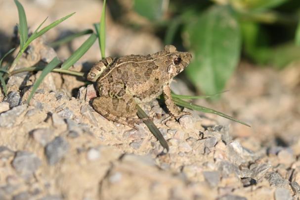 浅色脊线;上下唇缘有棕黑色纵纹,四肢背面各节有棕色横斑2-4条,体和四肢腹面为乳白色或乳黄色。雄性第一指婚垫发达,具单咽下外声囊,咽喉部黑色;有雄性线。
