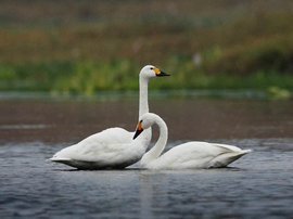 习性:性喜集群,除繁殖期外常呈小群或家族群活动。有时也和大天鹅在一起混群,行动极为小心谨慎,常常远远的离开人群和其他危险物。在水中游泳和栖息时,也常在距离岸边较远的地方。性活泼,游泳时颈部垂直竖立。鸣声高而清脆,常常显得有些嘈杂。主要以水生植物的叶、根、茎和种子等为食,也吃少量螺类、软体动物、水生昆虫和其他小型水生动物,有时还吃农作物的种子、幼苗和粮食。常呈小群或家族群觅食,觅食之前常先有一对不断地在觅食地点的上空盘旋侦察,确认没有危险的时候才去觅食,觅食期间还不时地伸长颈部观察四周,行动极为谨慎小心。8月末9月初离开繁殖地前往越冬地,翌年3月中下旬从越冬地迁往繁殖地。通常成6~10余只的小群或家族群迁徙。迁徙是逐步进行的,沿途常在富有食物的湖泊地区停息,有时甚至直到天变冷后才逐渐南迁,因此到达我国南部越冬地的时间多在11月初至11月中下旬。到达繁殖地的时间通常在5月末至6月初。