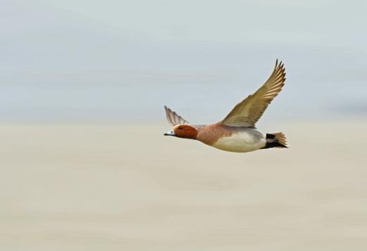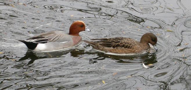 特征:赤颈鸭雄鸟额至头顶乳黄色或棕白色,其余头部和颈棕红色,缀有少许黑色斑点,尤以脸部和眼眶后较多。上体灰白色,密杂以暗褐色波状细纹,尤以肩部显著。腰以下黑斑细微而不显,更显白色。翅上小覆羽灰褐色而具白色虫蠹状斑,初级覆羽暗褐色,其余覆羽纯白色,大覆羽具黑色端斑;翼镜翠绿色,前后边缘衬以绒黑色宽边。雌鸟头顶和后颈黑褐色,满杂以浅棕色细纹,头和颈两侧棕色,缀有细小褐色斑点。上体暗褐色,背具淡褐色羽缘。肩羽缘棕色,腰羽缘灰白色,尾外侧羽缘白色。翅上覆羽大多淡褐色,飞羽黑褐色,具白色边缘,尤以三级飞羽白边最著。