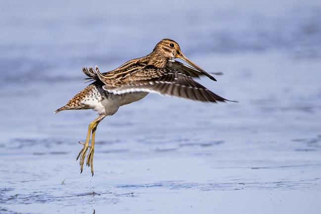 特征:小型涉禽,体长24-30厘米。嘴粗长而直,上体黑褐色,头顶具乳黄色或黄白色中央冠纹;侧冠纹黑褐色,眉纹乳黄白色,贯眼纹黑褐色。背、肩具乳黄色羽缘, 形成4条纵带。颈和上胸黄褐色,具黑褐色纵纹。下胸至尾下覆羽白色。尾具宽阔的棕色亚端斑和窄的白色端斑。外侧尾羽不变窄,次级飞羽具宽的白色端缘,在翅上形成明显的白色翅后缘,翅下覆羽亦较白,较少黑褐色横斑,飞翔时极明显。惊飞时常发出一声鸣叫,并不断地急转弯,成锯齿状曲折飞行。