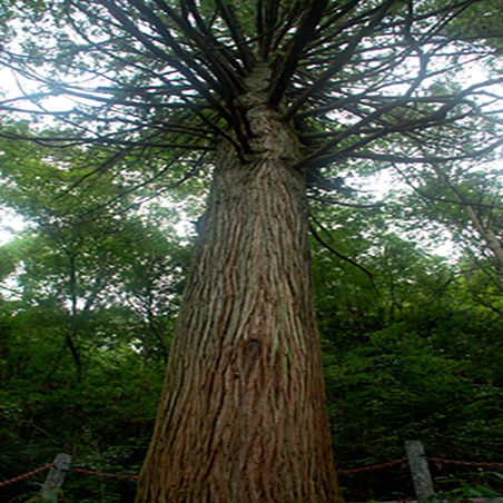 高大乔木;幼树尖塔形,大树圆锥形,树皮裂成长条片,内皮淡红色,小枝对生或轮生,常成2列状,幼枝绿色;