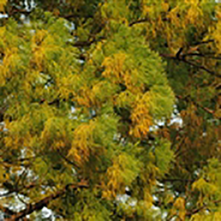 叶螺旋状排列,基部下延,有三种类型:鳞叶较厚,长约2毫米,在一至三年主枝上贴枝生长;线形叶扁平,薄,长1-3厘米,宽1.5-4毫米,生于幼树一年生小枝或大树萌芽枝上,常排成2列;线状锥形叶,长0.4-1.1厘米,生于大树的一年生短枝上,辐射伸展成3列状;后两种叶于秋季与侧生短枝一同脱落;