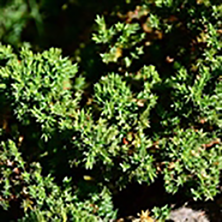 高达75厘米,冠幅逾2米,贴近地面伏生,叶全为刺叶,3叶交叉轮生,叶上面有2条白色气孔线,下面基部有2白色斑点,叶基下延生长,叶长6-8毫米;球果球形,内含种子2-3粒;