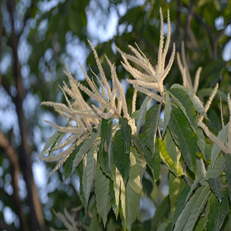 雄花序长10-20厘米,花序轴被毛,雄花3-5成簇;每总苞具(1-)3-5雄花;