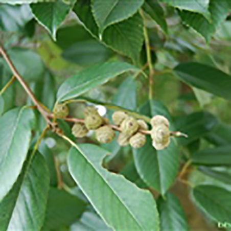 叶长椭圆形、卵状椭圆形或倒卵状椭圆形,长7-15厘米,先端短尖或短尾状,基部宽楔形或近圆,中部以上具锯齿,稀全缘,老叶下面银灰色;叶柄长1.5-2.5厘米;