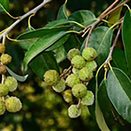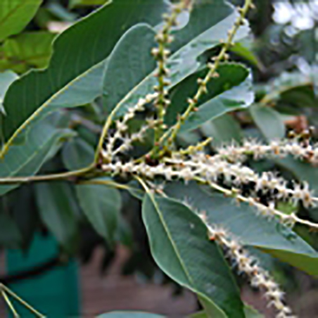 壳斗近球形,几全包果,径1.2-1.5厘米,壳斗小苞片突起连成脊肋状圆环,不规则瓣裂;果近球形;子叶平凹,有涩味;