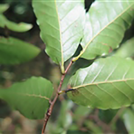 叶披针形或卵状披针形,长7-12厘米,宽2-3.5厘米,先端渐尖,基部宽楔形或近圆,具刺芒状锯齿,幼叶被黄色柔毛,老叶仅下面脉腋被柔毛,侧脉12-16对;叶柄长0.5-1.5厘米;