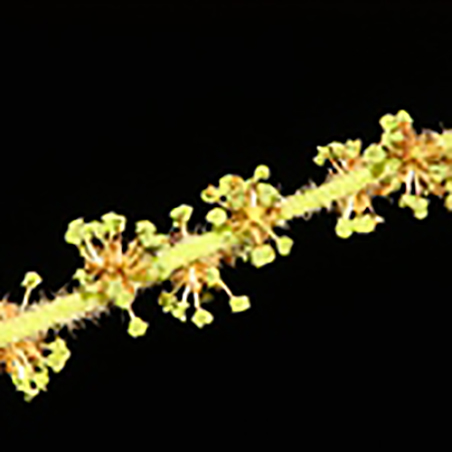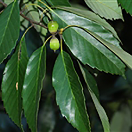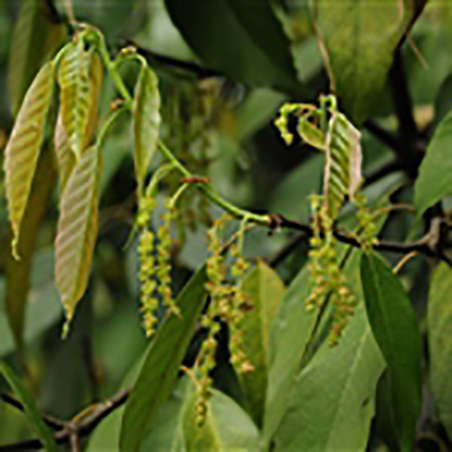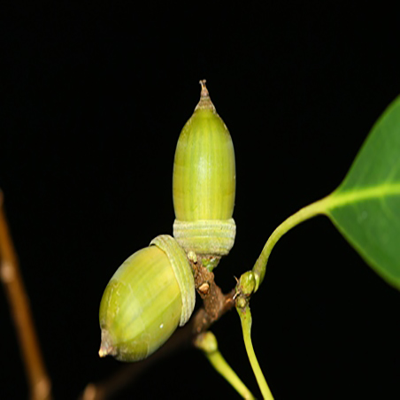 壳斗碗状,高6-8毫米,径0.9-1.4厘米,疏被毛,具5-6环带;果长卵圆形或椭圆形,长1-1.6厘米,径0.9-1.4厘米,近无毛;
