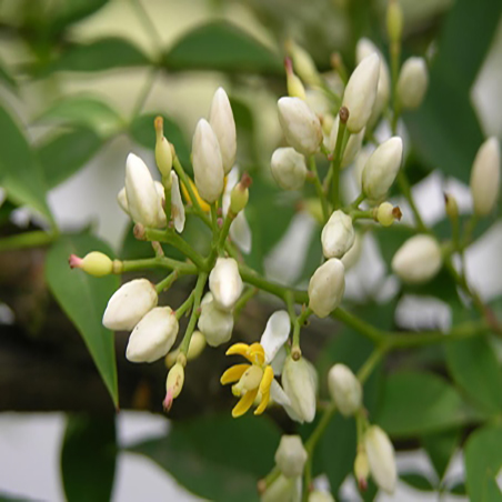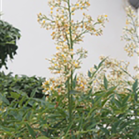 圆锥花序直立,长20-35厘米;花小,白色,具芳香,直径6-7毫米;萼片多轮,外轮萼片卵状三角形,长1-2毫米,向内各轮渐大,最内轮萼片卵状长圆形,长2-4毫米;花瓣长圆形,长约4.2毫米,宽约2.5毫米,先端圆钝;雄蕊6,长约3.5毫米,花丝短,花药纵裂,药隔延伸;子房1室,具1-3枚胚珠;