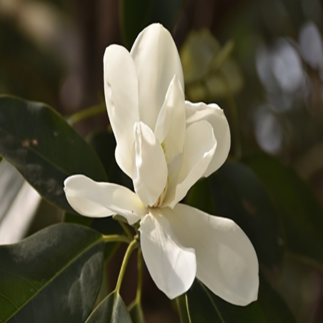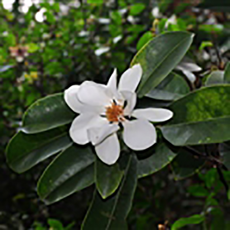 花单生枝梢叶腋,芳香,径10-12厘米;花梗具3苞片痕;花被片9,白色,基部稍淡红色,外轮倒卵形,内两轮渐窄小,近匙形;雄蕊多数,药室内向开裂,药隔短尖,花丝淡紫色;雌蕊群长1.5-1.8厘米,柄长5-8毫米,心皮多数,窄卵圆形;