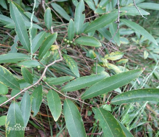 狭叶山胡椒(Lindera angustifolia W. C. Cheng)是樟科山胡椒属落叶小乔木或灌木。高2-8米,幼枝条黄绿色,无毛。冬芽卵形,紫褐色,芽鳞具脊;外面芽鳞无毛,内面芽鳞背面被绢质柔毛,内面无毛。叶互生,椭圆状披针形,长6-14厘米,宽1.5-3.5厘米,先端渐尖,基部楔形,近革质,上面绿色无毛,下面苍白色,沿脉上被疏柔毛,羽状脉,侧脉每边8-10条。伞形花序2-3生于冬芽基部。雄花序有花3-4朵,花梗长3-5毫米,花被片6,能育雄蕊9。雌花序有花2-7朵;花梗长3-6毫米;花被片6;退化雄蕊9;子房卵形,无毛,花柱长1毫米,柱头头状。果球形,直径约8毫米,成熟时黑色,果托直径约2毫米;果梗长0.5-1.5厘米,被微柔毛或无毛。花期3-4月,果期9-10月。
