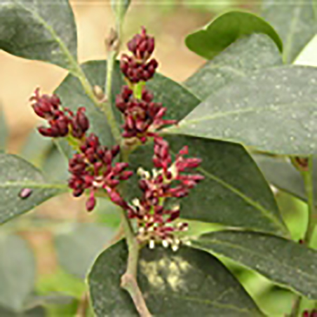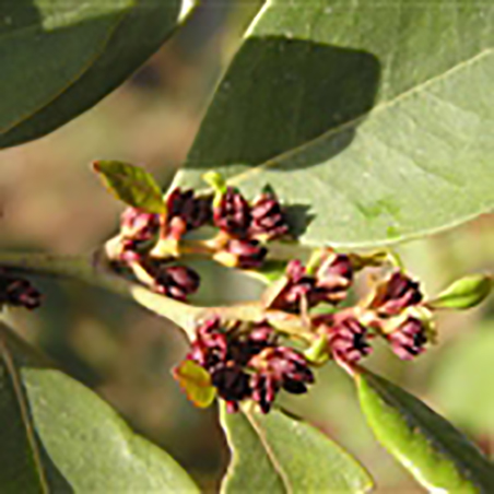 叶椭圆形,长3-7厘米,先端钝尖或稍尖,基部宽楔形,下面被鳞片,后脱落,侧脉5-6对,网脉不明显,叶柄长0.5-1厘米,無细小,早落;
