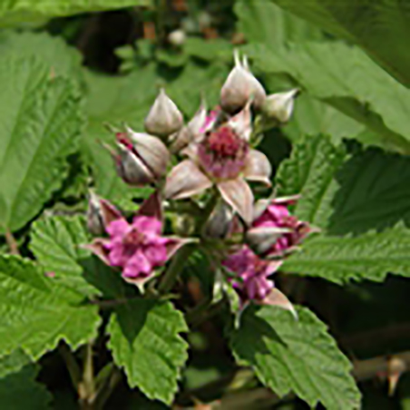 伞房花序顶生或腋生,具花数朵至多朵,被柔毛和细刺;花梗被柔毛和稀疏小皮剌;苞片线形,被柔毛;花径约1厘米;花萼密被柔毛和疏密不等的针刺,萼片卵状披针形或披针形,有时条裂,花果期均直立开展;花瓣卵圆形或长圆形,粉红或紫红色,花丝白色;子房被柔毛;