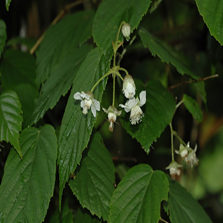 花径1-1.5厘米;花梗被绒毛状柔毛;苞片与托叶相似,有时具深裂锯齿;花萼被灰色绒毛,萼片卵形或三角状卵形,长5-8毫米,全缘,果期反折;花瓣白色,宽卵形或近圆形,有柔毛;雄蕊无毛;雌蕊多数;