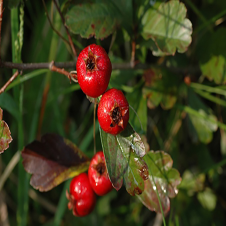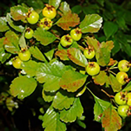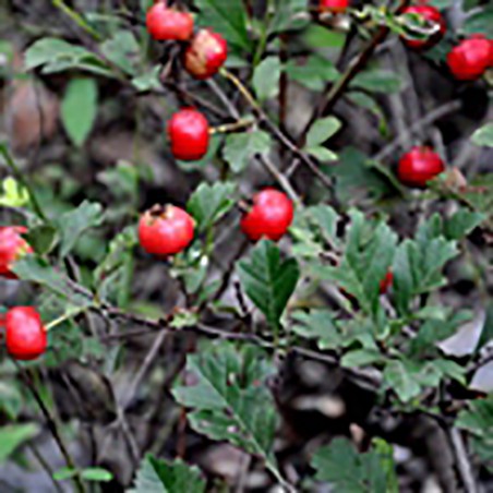 果近球形或扁球形,径1-1.2厘米,红或黄色,常有宿存反折萼片或1苞片;小核4-5,两侧平滑;