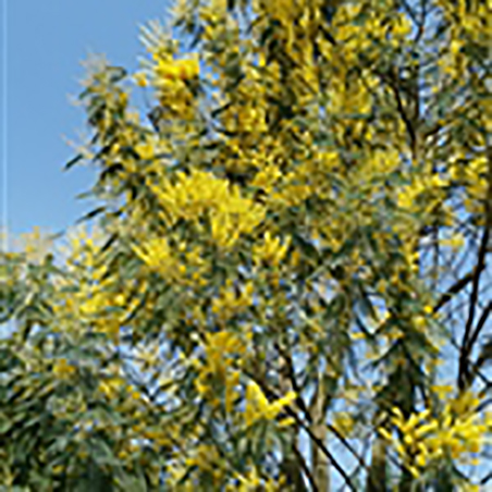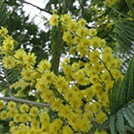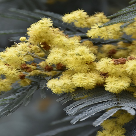 二回羽状复叶,银灰或淡绿色,有时在叶尚未展开时,稍呈金黄色;叶轴上的腺体位于羽片着生处;羽片10-20(-25)对;小叶26-46对,密集,间距不超过小叶本身的宽度,线形,长2.6-3.5毫米,宽0.4-0.5毫米,下面或两面被灰扫色短柔毛;