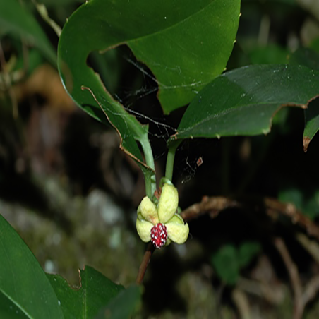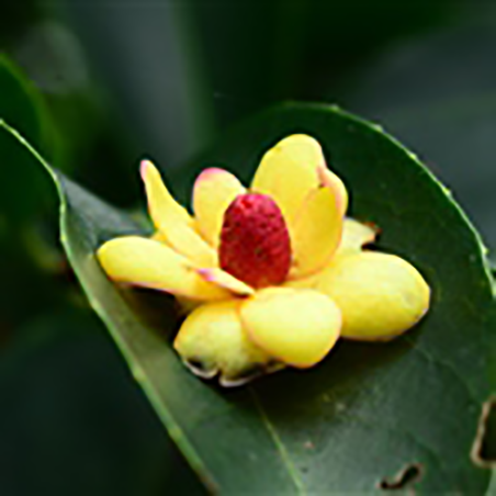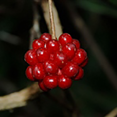 聚合果近球形,径2.5-4厘米;小浆果倒卵圆形,长1-2.2厘米,干时革质不露出种子;