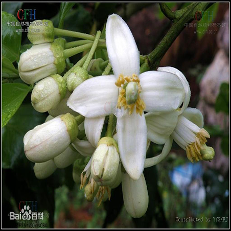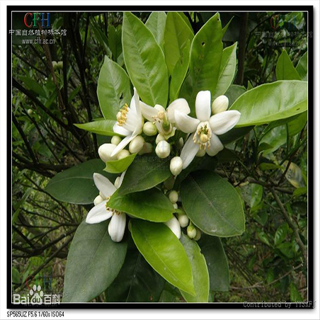 柑橘的组成由:根、茎、叶、花和果实组成。小乔木。单生复叶,翼叶通常狭窄,或仅有痕迹,叶片披针形,椭圆形或阔卵形,大小变异较大,顶端常有凹口,中脉由基部至凹口附近成叉状分枝,叶缘至少上半段通常有钝或圆裂齿,很少全缘。花单生或2-3朵簇生;花萼不规则5-3浅裂;花瓣通常长1.5厘米以内;雄蕊20-25枚,花柱细长,柱头头状。叶柑橘的叶片为常绿性的单生复叶,由叶身、叶翼组成。叶翼着生在叶柄上。柑橘种类品种不同,叶的大小不等,形状各异。 根由主根、侧根、须根及须根端着生极短的根毛构成的群体,统称为根系。压条或繁殖的植株,无主根。树干与根交界处,叫根颈。 枝干柑橘枝干由主干、主枝、侧枝组成。果形种,通常扁圆形至近圆球形,果皮甚薄而光滑,或厚而粗糙,淡黄色,朱红色或深红色,甚易或稍易剥离,橘络甚多或较少,呈网状,易分离,通常柔嫩,中心柱大而常空,稀充实,瓢囊7-14瓣,稀较多,囊壁薄或略厚,柔嫩或颇韧,汁胞通常纺锤形,短而膨大,稀细长,果肉酸或甜,或有苦味,或另有特异气味;种子或多或少数,稀无籽,通常卵形,顶部狭尖,基部浑圆,子叶深绿、淡绿或间有近于乳白色,合点紫色,多胚,少有单胚。花期4-5月,果期10-12月。