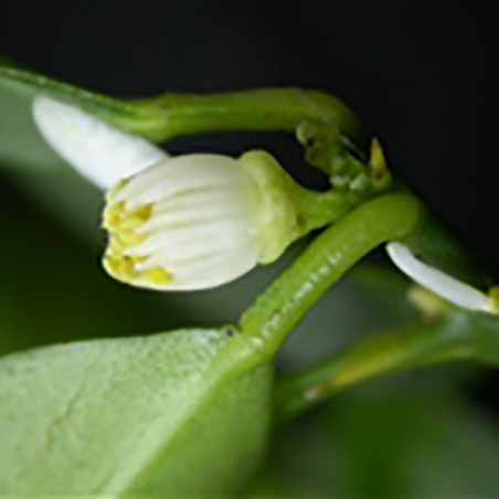 单花腋生,常位于叶柄与刺之间;花萼杯状,裂片三角形,5-4(-3)裂,淡绿色;花瓣白色,长3-4(-5)毫米,卵形,顶端尖,扩展;雄蕊为花瓣数的2-3倍,花丝合生呈筒状,少数为两两合生,白色,花药淡黄色,花盘短小,花柱短,柱头不增粗;