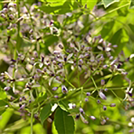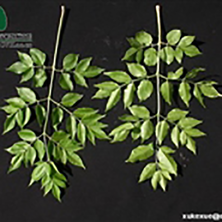 二至三回奇数羽状复叶,长20-40厘米;小叶卵形、椭圆形或披针形,长3-7厘米,宽2-3厘米,先端渐尖,基部楔形或圆,具钝齿,幼时被星状毛,后脱落,侧脉12-16对;