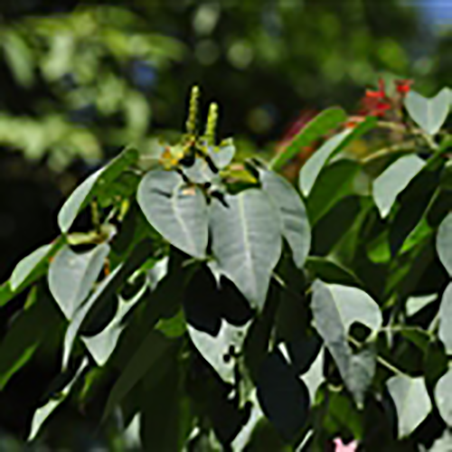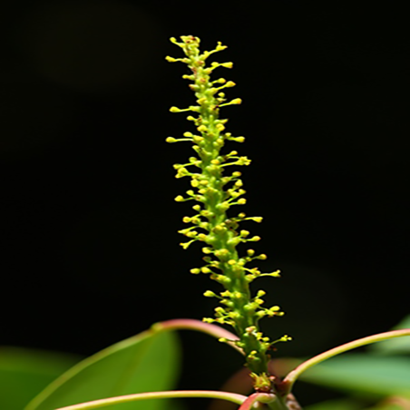 花单性,雌雄同株,密集成长4-9厘米的顶生总状花序,雌花生于花序轴下部,雄花生于花序轴上部或有时整个花序全为雄花。雄花花梗丝状,长1-3毫米;苞片卵形,长约1.5毫米,宽近1毫米,顶端锐尖,基部两侧各具一长圆形或肾形,长约2毫米宽近1毫米的腺体,每一苞片内有5-7朵花;小苞片小,狭,长1-1.2毫米;花萼杯状,具不整齐的裂齿;雄蕊2枚,少有3枚,花丝短,花药球形。雌花花梗粗壮,圆柱形,长约5毫米;苞片几与雄花的相似,每一苞片内仅有1朵花;花萼3深裂几达基部,裂片三角形,长1.8-2毫米,宽约1.2毫米,顶端短尖,边缘有疏细齿;子房卵形,3室,花柱粗壮,柱头3,外反。 |