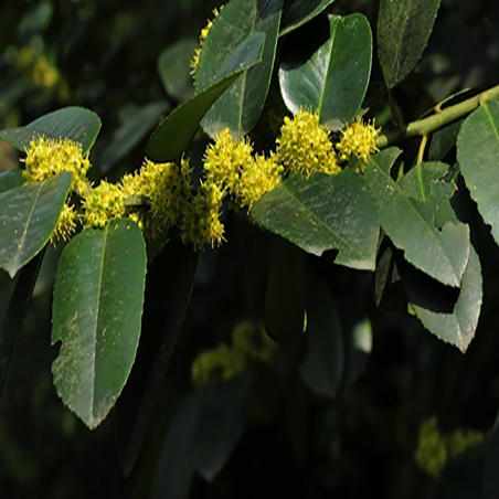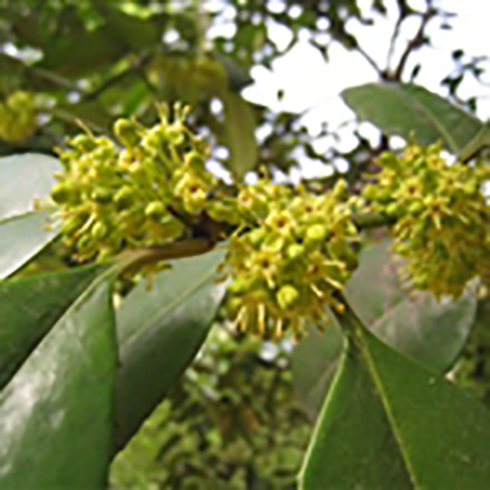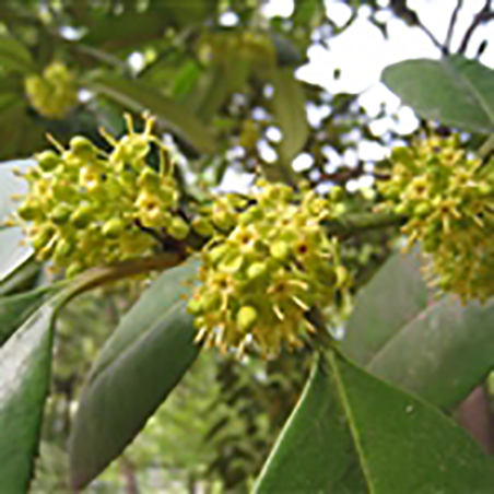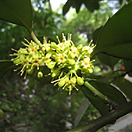 花序族生叶腋,圆锥状;花4基数,浅黄绿色;雄花序每分枝具3-9花,花序梗长2毫米;花梗长6-8毫米;花萼裂片圆形;花瓣卵状长圆形,基部合生;雄蕊与花瓣等长退化子房近球形;雌花序每分枝具1-3花,花序梗长2毫米;花梗长5-8毫米;花萼径3毫米;花瓣卵形;退化雄蕊长为花瓣1/3;子房卵圆形,柱头盘状;