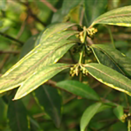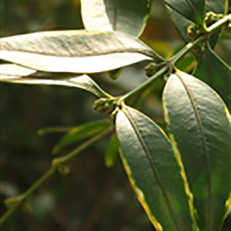 叶革质,窄卵形、卵状椭圆形或披针形,长4-9厘米,宽1.5-3.5厘米,先端渐尖,有时稍钝,基部楔形或宽楔形,上面中脉凸起,被微毛或无毛,侧脉多而密;叶柄长2-3毫米,被微毛;