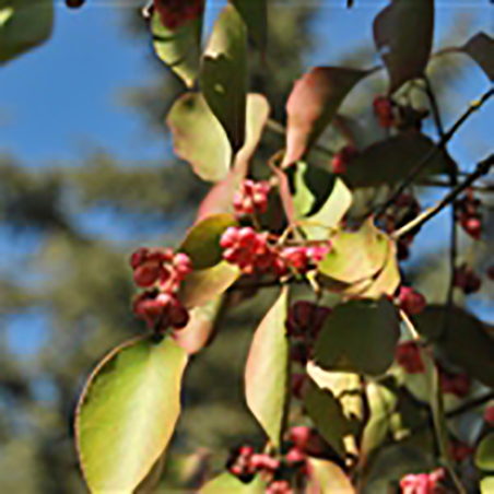 白杜全国分布广泛,近年来栽培也渐多。小乔木,树皮网状裂;叶卵圆形;果实4浅裂。 |