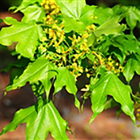 花多数,杂性,雄花与两性花同株,多数常成无毛的顶生圆锥状伞房花序,长与宽均约4厘米,生于有叶的枝上,花序的总花梗长l-2厘米,花的开放与叶的生长同时;萼片5,黄绿色,长圆形,顶端钝. 形,长2-3毫米;花瓣5,淡白色,椭圆形或椭圆倒卵形,长约3毫米;雄蕊8,无毛,比花瓣短,位于花盘内侧的边缘,花药黄色,椭圆形;子房无毛或近于无毛,在雄花中不发育,花,柱无毛,很短,柱头2裂,反卷;花梗长1厘米,细瘦,无毛; |