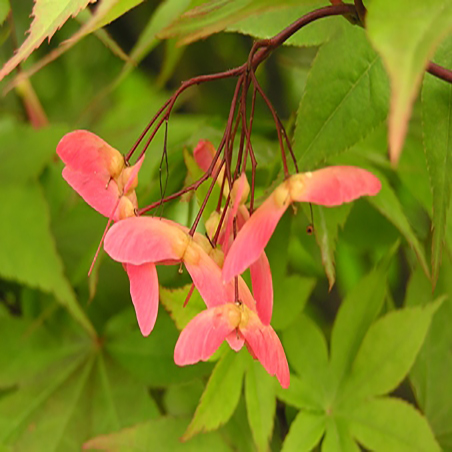 幼果紫红色,熟后褐黄色,果核球形,脉纹显著,两翅成钝角;