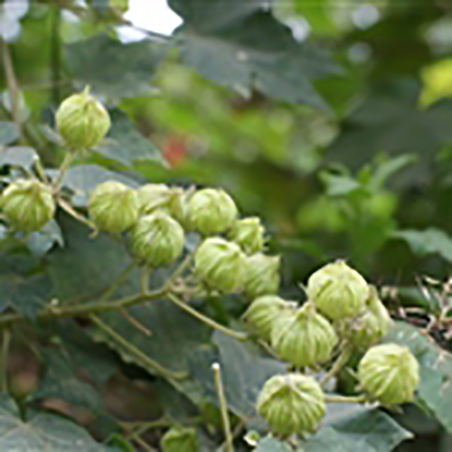蒴果扁球形,径约2.5厘米,被淡黄色刚毛和绵毛,果爿5;