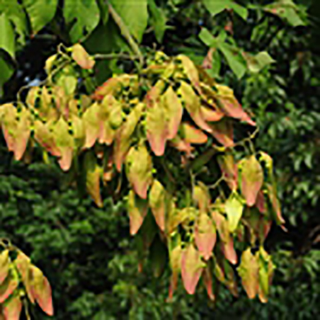 蓇葖果膜质,有柄,成熟前开裂成叶状,长6 -11厘米、宽1.5-2.5厘米,外面被短茸毛或几无毛,每蓇葖果有种子2-4个;种子圆球形,表面有绉纹,直径约7毫米;