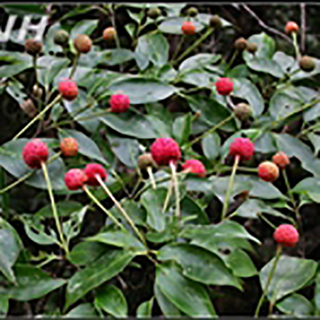 球形果序径2.5-3厘米,被白色细毛,成熟时黄或红色;果序柄纤细,长3.5-10厘米,近无毛;