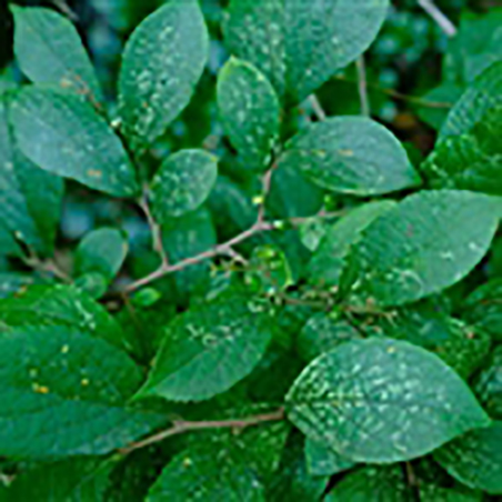嫩叶、叶柄、叶下面均被灰黄色皱曲柔毛;叶纸质,椭圆形或倒卵形,长4-7(10)厘米,先端急尖或短尖,有时圆,基部楔形或圆,有细尖锯齿,上面有柔毛;上面中脉凹下,侧脉4-7对;