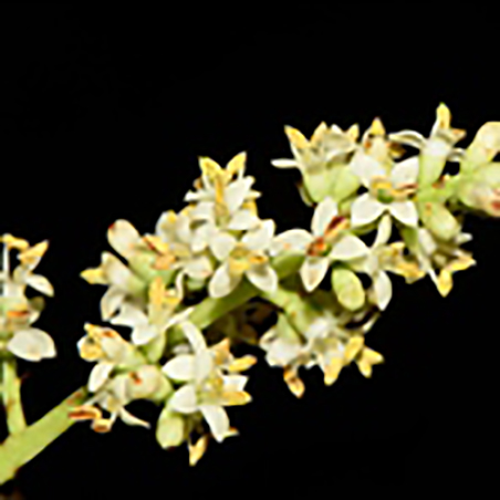 圆锥花序顶生,长8-20厘米,宽8-25厘米;花序梗长0-3厘米;花序轴及分枝轴无毛,紫色或黄棕色,果时具棱;花序基部苞片常与叶同型,小苞片披针形或线形,长0.5-6厘米,宽0.2-1.5厘米,凋落;花无梗或近无梗,长不超过1毫米;花萼无毛,长1.5-2毫米,齿不明显或近截形;花冠长4-5毫米,花冠管长1.5-3毫米,裂片长2-2.5毫米,反折:花丝长1.5-3毫米,花药长圆形,长1-1.5毫米;花柱长1.5-2毫米,柱头棒状。
