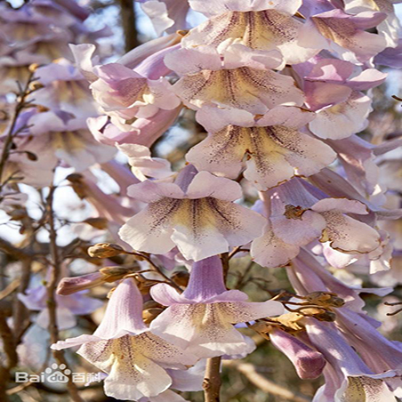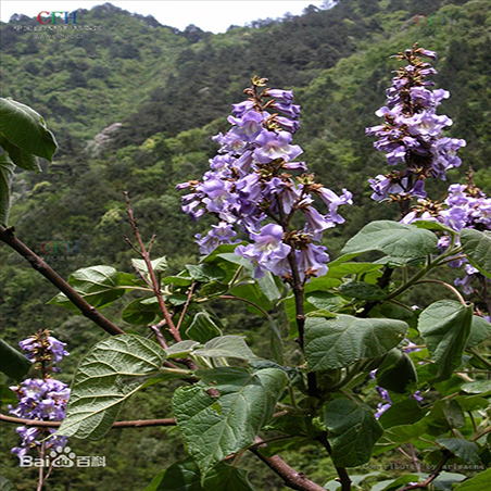 乔木高达20米,树冠宽大伞形,树皮褐灰色;小枝有明显皮孔,幼时常具粘质短腺毛。叶片心脏形,长达40厘米,顶端锐尖头,全缘或波状浅裂,上面毛稀疏,下面毛密或较疏,老叶下面的灰褐色树枝状毛常具柄和3-12条细长丝状分枝,新枝上的叶较大,其毛常不分枝,有时具粘质腺毛;叶柄常有粘质短腺毛。 花序枝的侧枝不发达,长约中央主枝之半或稍短,故花序为金字塔形或狭圆锥形,长一般在50厘米以下,少有更长,小聚伞花序的总花梗长1-2厘米,几与花梗等长,具花3-5朵;萼浅钟形,长约1.5厘米,外面绒毛不脱落,分裂至中部或裂过中部,萼齿卵状长圆形,在花中锐头或稍钝头至果中钝头;花冠紫色,漏斗状钟形,长5-7.5厘米,在离管基部约5毫米处弓曲,向上突然膨大,外面有腺毛,内面几无毛,檐部2唇形,直径约小5厘米;雄蕊长达2.5厘米;子房卵圆形,有腺毛,花柱短于雄蕊。蒴果卵圆形,幼时密生粘质腺毛,长3-4.5厘米,宿萼不反卷,果皮厚约1毫米;种子连翅长约2.5-4毫米。花期4-5月,果期8-9月。 该种在被毛疏密,花枝及花冠大小,萼齿尖钝等方面常因生境和海拔高低而有变异,生长在海拔较高处,有花枝变小、萼齿在花期较钝、花冠稍短缩的趋势。