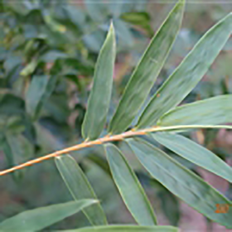 假小穗单生或以数枝簇生于花枝各节,并在基部托有鞘状苞片,线形至线状披针形,长3-6厘米;先出叶长3.5毫米,具2脊,脊上被短纤毛;具芽苞片通常1或2片,卵形至狭卵形,长4-7.5毫米,无毛,具9-13脉,先端钝或急尖;小穗含小花(3)5-13朵,中间小花为两性;小穗轴节间形扁,长4-4.5毫米,无毛;颖不存在;外稃两侧稍不对称,长圆状披针形,长18毫米,无毛,具19-21脉,先端急尖;内稃线形,长14-16毫米,具2脊,脊上被短纤毛,脊间6脉,脊外有一边具4脉,另一边具3脉,先端两侧各伸出1被毛的细长尖头,顶端近截平而边缘被短纤毛;鳞被中两侧的2片呈半卵形,长2.5-3毫米,后方的1片细长披针形,长3-5毫米,边缘无毛;花丝长8-10毫米,花药紫色,长6毫米,先端具一簇白色画笔状毛;子房卵球形,长约1毫米,顶端增粗而被短硬毛,基部具一长约1毫米的子房柄,柱头3或其数目有变化,直接从子房顶端伸出,长5毫米,羽毛状。 |