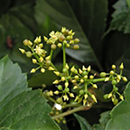 小枝无毛;嫩芽为红或淡红色;卷须总状5-9分枝,嫩时顶端尖细而卷曲,遇附着物时扩大为吸盘;