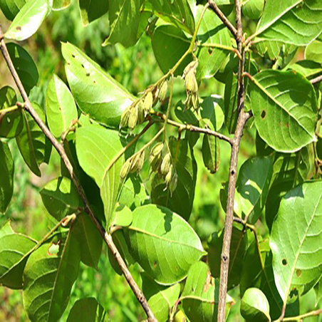叶纸质,倒卵形、宽倒卵形或椭圆形,长6-14厘米,先端渐尖或尾尖,基部楔形,具锐锯齿,老叶下面绿色,疏被星状柔毛,侧脉7-9对;叶柄长1-2厘米;