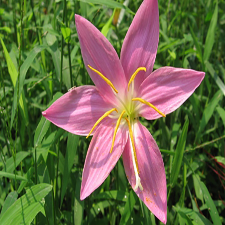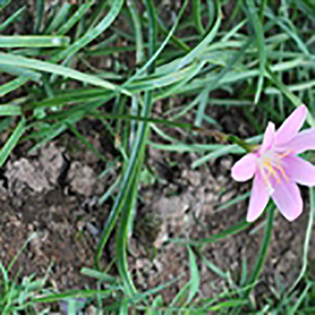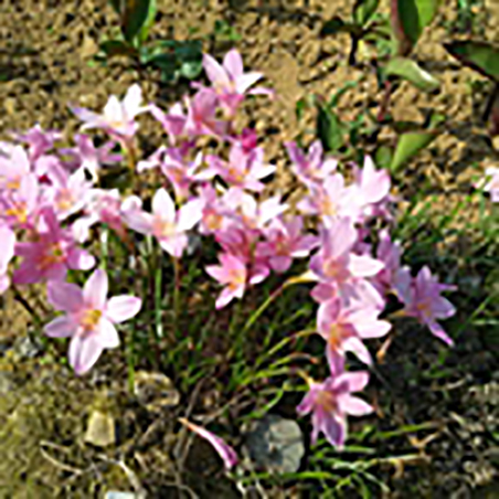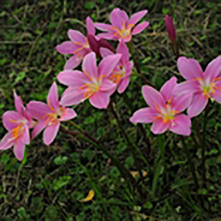 本种与葱莲的区别:花玫瑰红或粉红色,花被筒长1-2.5厘米;叶线形,宽6-8毫米;