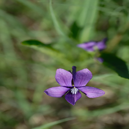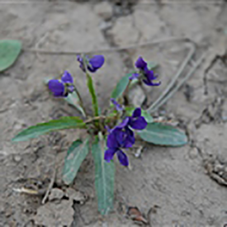 花紫堇色或淡紫色,稀白色或侧方花瓣粉红色,喉部有紫色条纹;花梗与叶等长或高于叶,中部有2线形小苞片;萼片卵状披针形或披针形,长5-7毫米,基部附属物短;花瓣倒卵形或长圆状倒卵形,侧瓣长1-1.2厘米,内面无毛或有须毛,下瓣连管状距长1.3-2厘米,有紫色脉纹;距细管状,末端不向上弯;柱头三角形,两侧及后方具微隆起的缘边,顶部略平,前方具短喙;