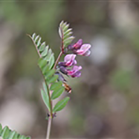 总状花序有2-4(-6)花;花序梗几不明显;花萼钟状,萼齿披针形或锥形,短于萼筒;花冠长1.8-3厘米,红、紫或浅粉红色,稀白色,旗瓣近提琴形,先端凹,翼瓣短于旗瓣,龙骨瓣内弯,短于翼瓣;子房线形,无毛,胚珠5,子房柄短,花柱与子房联接处呈近90°夹角,柱头远轴面有一束黄髯毛;