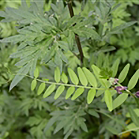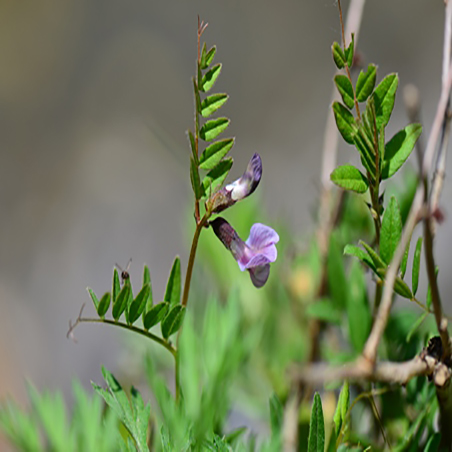 偶数羽状复叶长7-12厘米,卷须发达;托叶半戟形,有2-4裂齿;小叶5-7对,长卵圆形或长圆披针形,长0.6-3厘米,先端钝或平截,微凹,有短尖头,基部圆,两面被疏柔毛,下面毛较密;