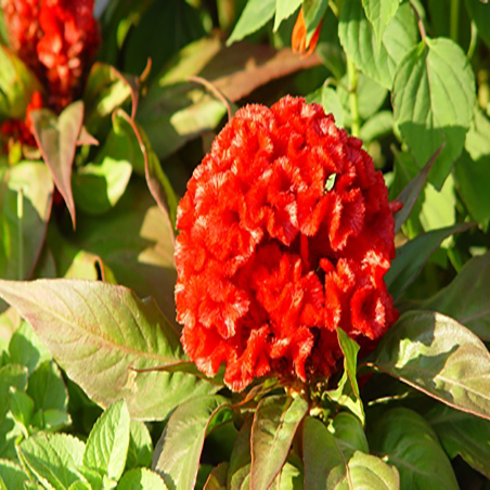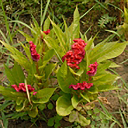 花多数,极密生,成扁平肉质鸡冠状、卷冠状或羽毛状的穗状花序,一个大花序下面有数个较小的分枝,圆锥状矩圆形,表面羽毛状; 花被片红色、紫色、黄色、橙色或红色黄色相间。
