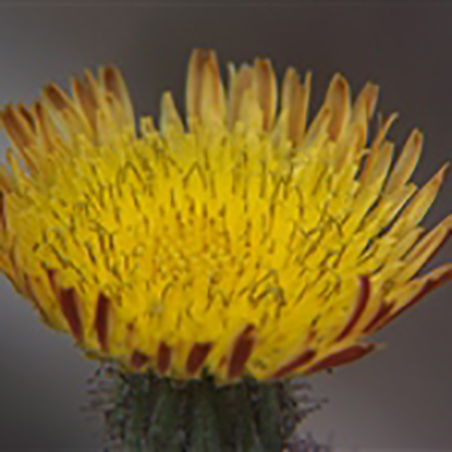 头状花序在茎枝顶端排成伞房状花序。总苞钟状,长1-1.5厘米,宽0.8-1厘米,基部有稀疏或稍稠密的长或短绒毛。总苞片3层,外层披针形,长4-6毫米,宽1-1. 5毫米,中内层披针形,长达1.5厘米,宽3毫米;全部总苞片顶端长渐尖,外面沿中脉有1行头状具柄的腺毛。舌状小花多数,黄色。