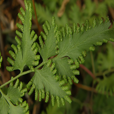叶轴具窄边,羽片多数,对生于叶轴短距两侧;不育羽片尖三角形,两侧有窄边,二回羽状,叶干后褐色,纸质;
