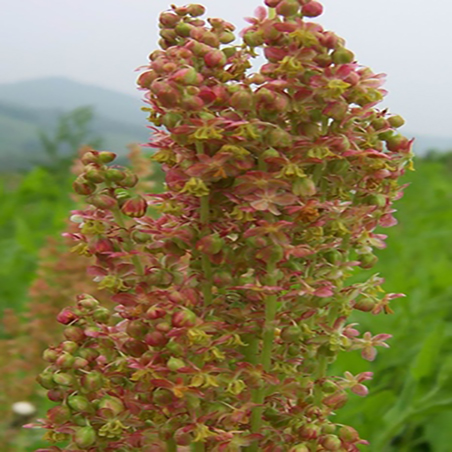 花单性,雌雄异株;窄圆锥状花序顶生,花梗中部具关节;雄花外花被片椭圆形,内花被片宽椭圆形,长2.5-3毫米;雌花外花被片椭圆形,果时反折,内花被片果时增大,近圆形,径达4毫米,基部心形,网脉明显,基部具小瘤;
