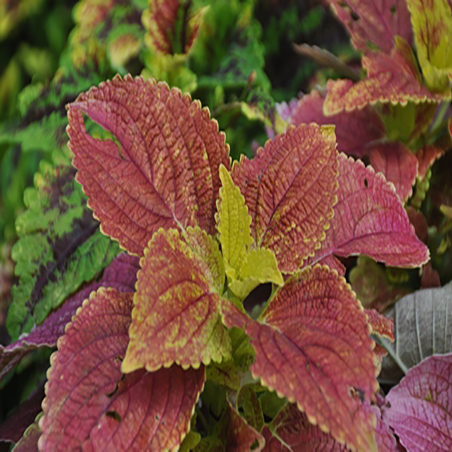 彩叶草姿态多变,叶色绚丽多彩,多用于园路边、林缘大片种植,以营造不同的色块,也常用于花坛、花境作配材;