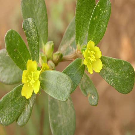 花无梗,径4-5毫米,常3-5簇生枝顶,午时盛开;叶状膜质苞片2-6,近轮生;萼片2,对生,绿色,盔形,长约4毫米,背部龙骨状凸起,基部连合:花瓣(4)5,黄色,长3-5毫米,基部连合;雄蕊8或更多,长约1.2厘米,花药黄色,子房无毛,花柱较雄蕊稍长;